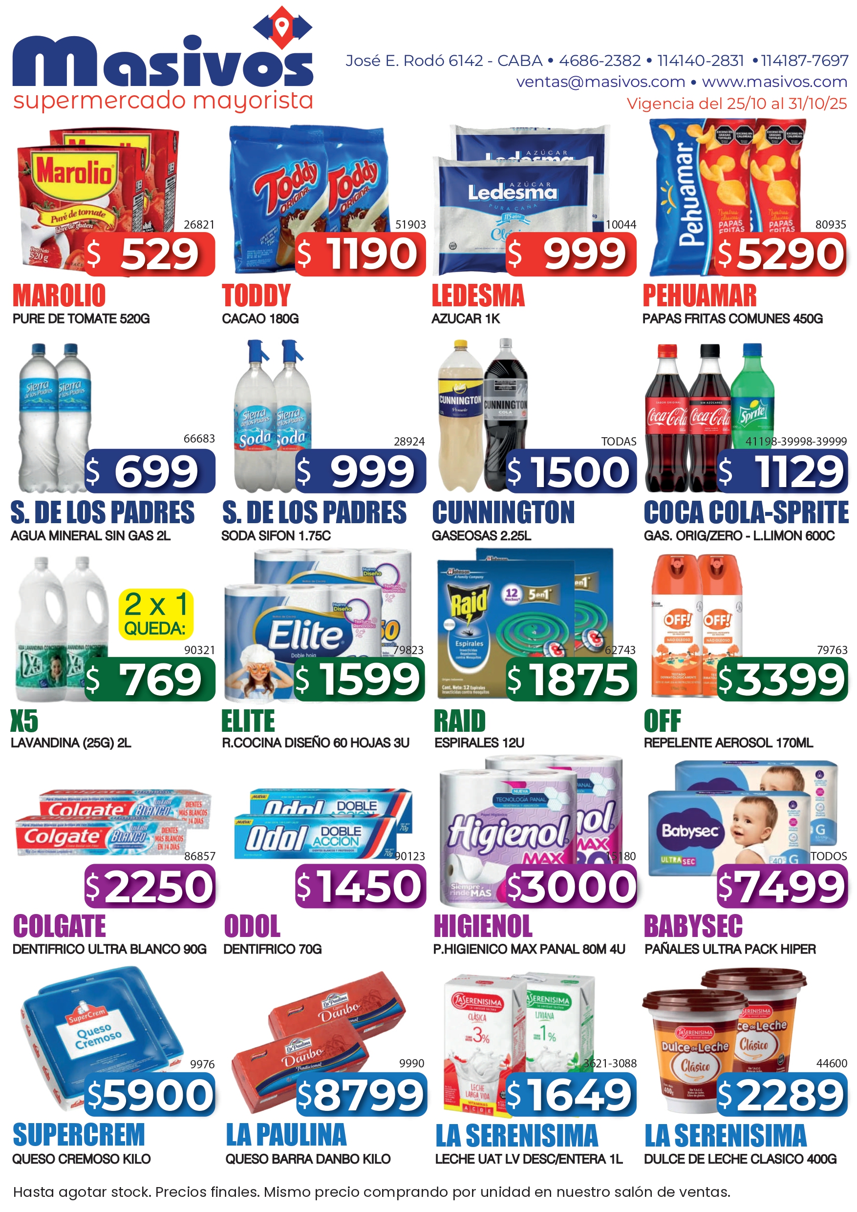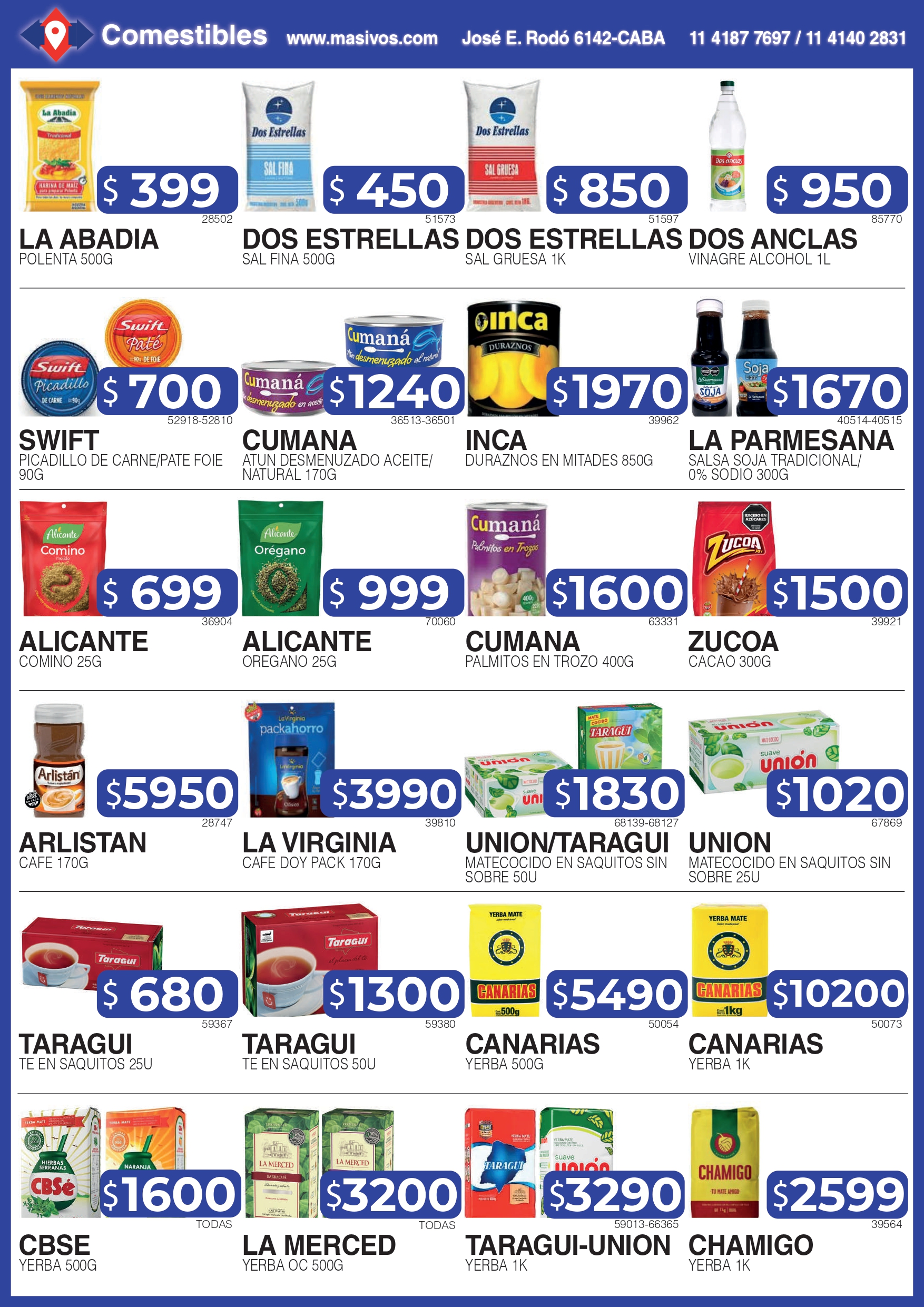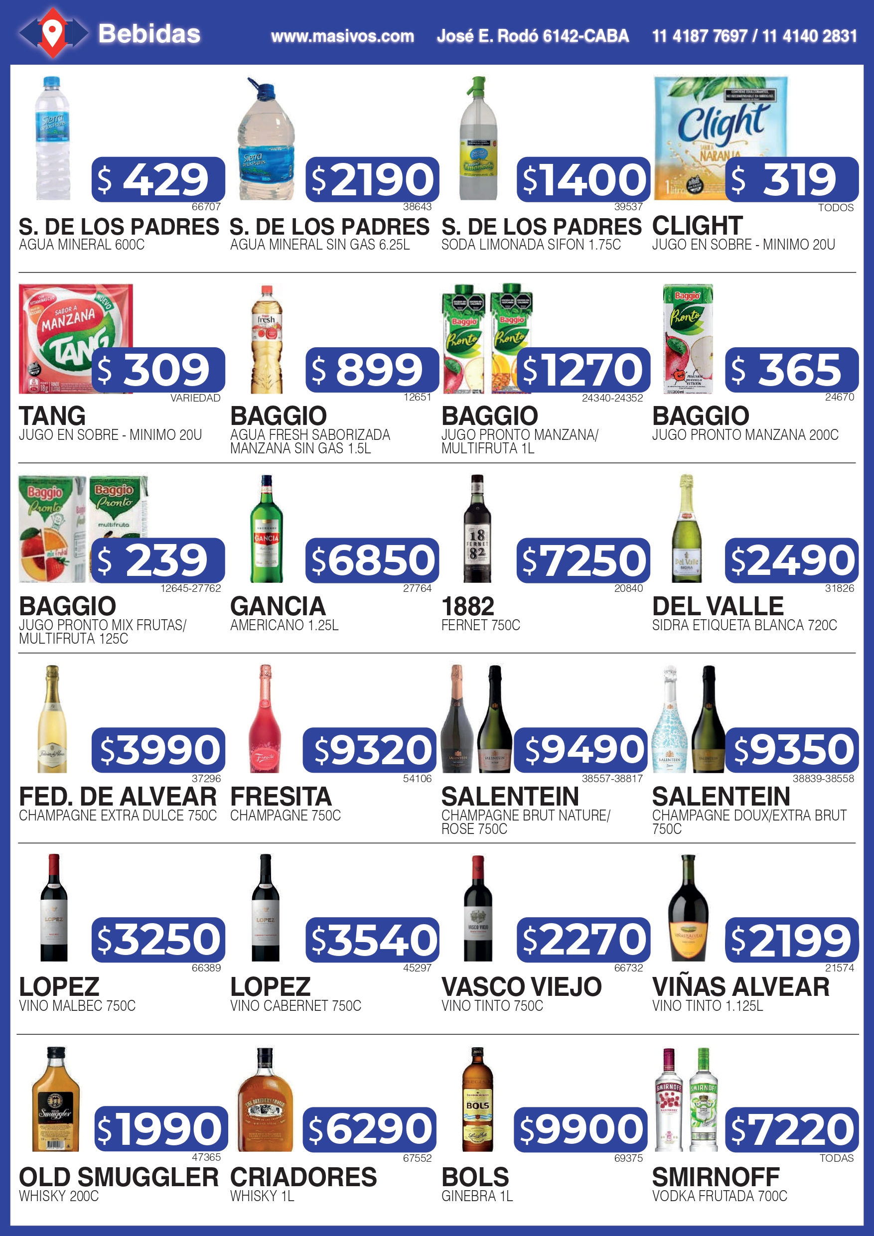 Los precios corresponden por unidad. Prohibida la venta a menores de 18 años. Todos los productos publicados son de origen Argentina, excepto los expresamente indicados. Las fotos son ilustrativas. Promociones no acumulables con descuentos y ofertas. Precios válidos hasta agotar stock disponible en sucursal.