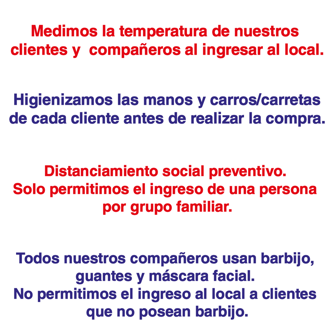 • 2500 m2 con un amplio surtido de productos Comestibles, Bebidas, Bodega, Limpieza, Perfumería, Fiambrería, Panificados, Congelados, Lácteos, Golosinas, Bazar y Kiosco