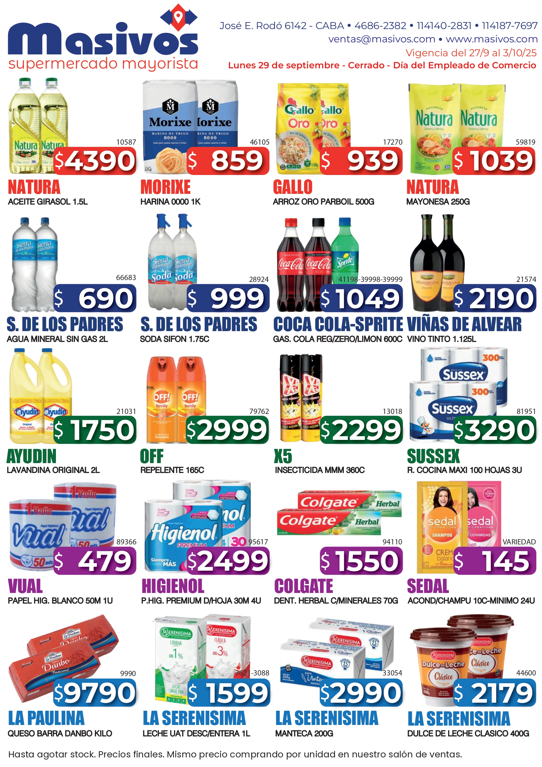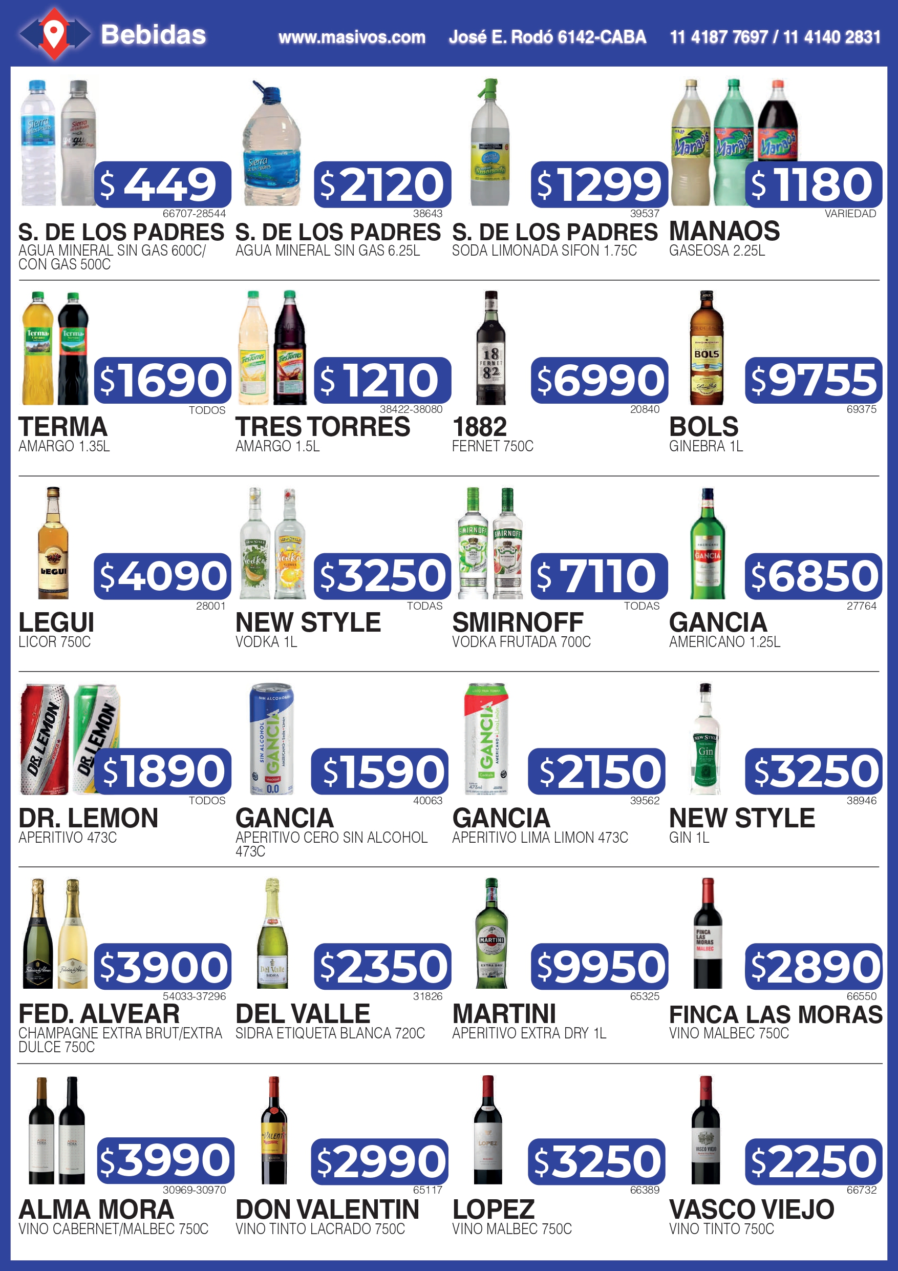 Los precios corresponden por unidad. Prohibida la venta a menores de 18 años. Todos los productos publicados son de origen Argentina, excepto los expresamente indicados. Las fotos son ilustrativas. Promociones no acumulables con descuentos y ofertas. Precios válidos hasta agotar stock disponible en sucursal.